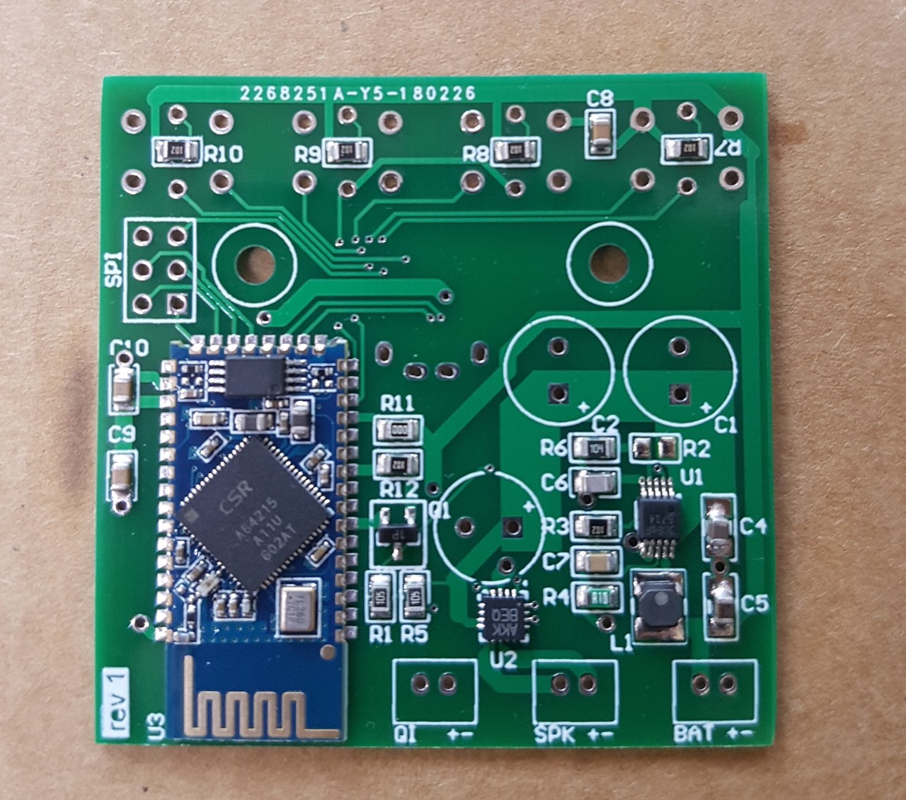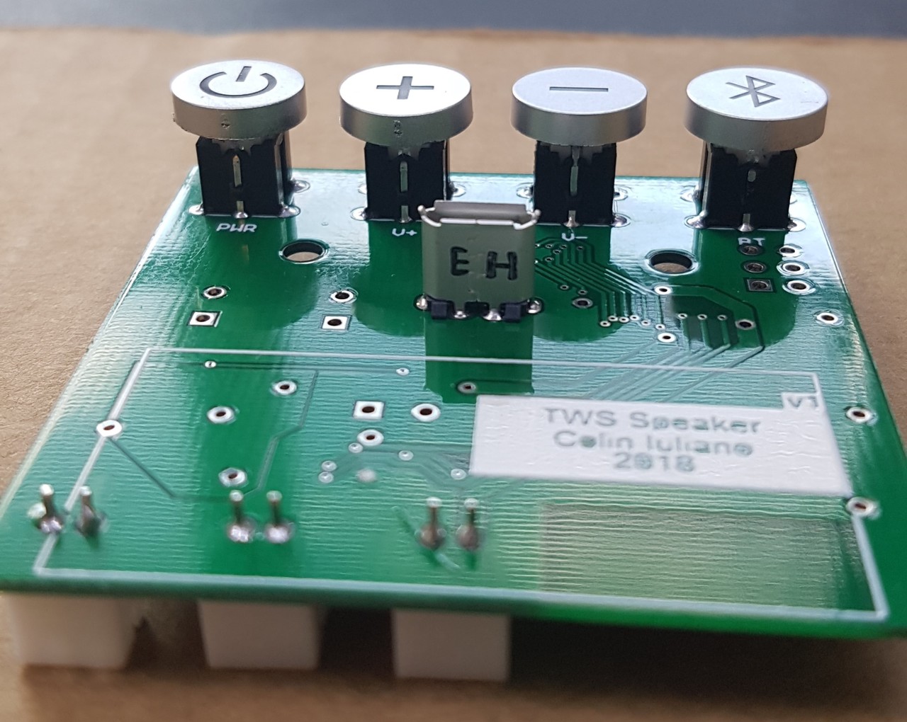 The hardware for this project is quite simple since the CSRA64215 module is an all-in-one solution. Most of the effort for this project went into messing around with all the poorly-documented configuration options available. Many 2” speakers were tested for their sound quality to ensure that the final product could benefit from only the highest quality driver available.