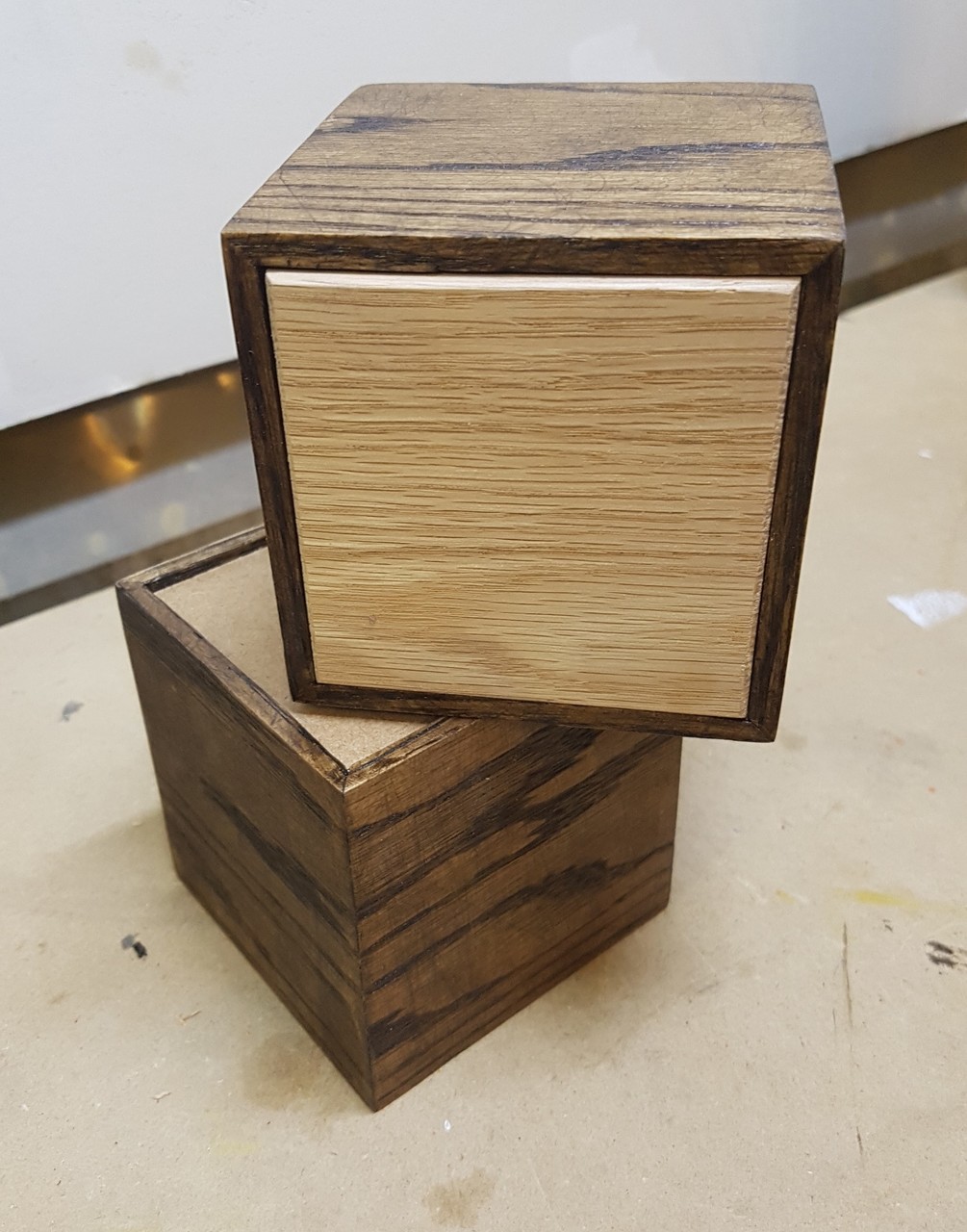 Each speaker is made of solid oak with contrasting espresso stain. To ensure perfect fits, many templates were 3D-printed to assist with cutting. Each speaker design was thoroughly 3D-modelled to guarantee adequate volume and seamless integration. Two separate designs were tested, one with round edges and veneer, the other with mitred corners and continuous grain. The square box ended up being the favourite.